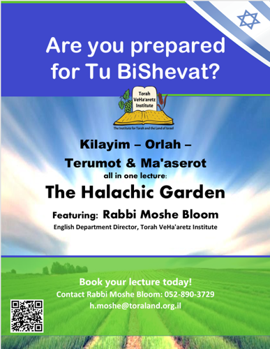 Many synagogues and organizations are beginning to book lectures and workshops ahead of Tu Bishevat. Book your lecture or lecture series today!