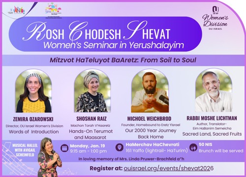 OU Israel will be holding a women's learning event dedicated to the mitzvot hateluyot ba'aretz. Shoshan Raiz, from our English Department, will be giving over a hands-on workshop on terumot and ma'aserot.